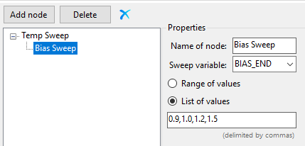 To create a nested sweep, select a parent node before clicking on the Add node button. The new node will be nested below the selected one. (e.g. “BiasSweep”, Figure 1.1.13)
