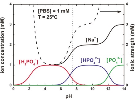 In this figure, we plot the concentration of the PBS buffer ions, and the