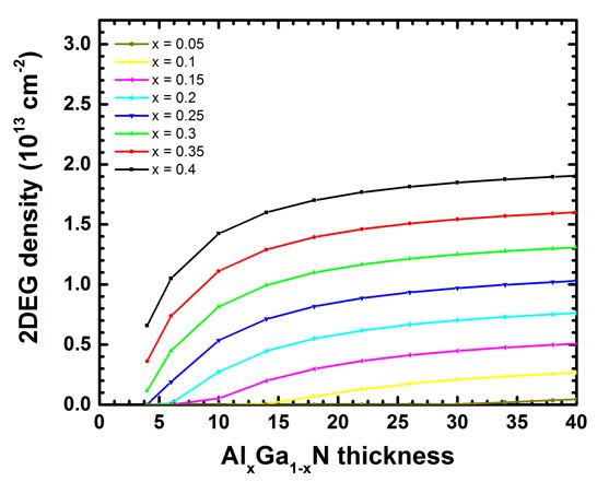 The thickness of the AlxGa1-xN barrier is defined as a variable.