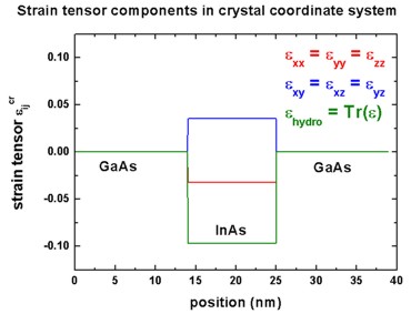 • As GaAs is unstrained, all strain tensor components are zero in GaAs.