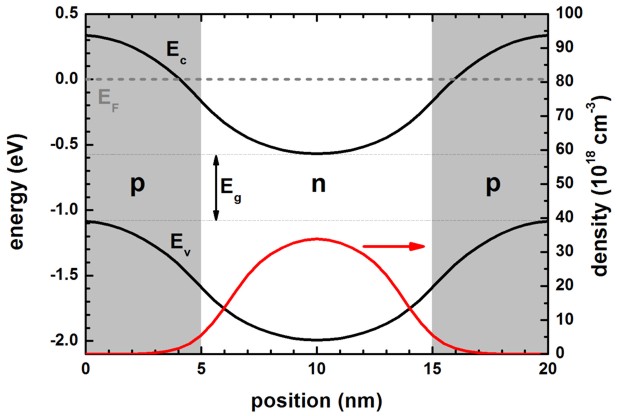 - p-type region: 0 nm - 5 nm and 15 nm to 20 nm