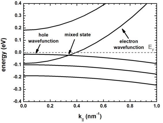 light hole / heavy hole degenerate due to choice of k.p parameters)